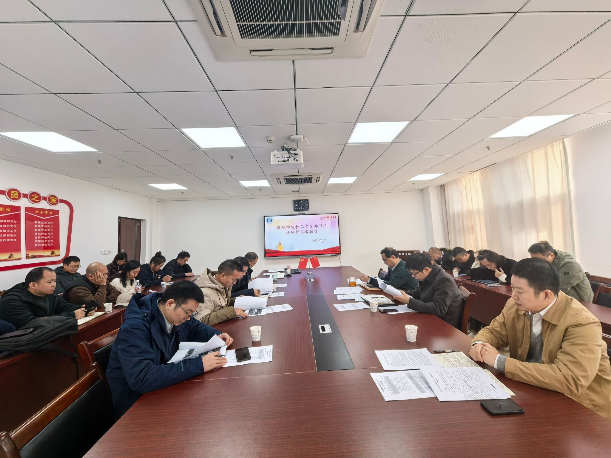 12月18日,数理学院党委在东区教学综合楼A1505会议室召开2025年度教工党支部书记述职评议考核大会。院党委书记张基得主持会议,学院领导班子成员、教工党支部书记、教师代表等参加会议。