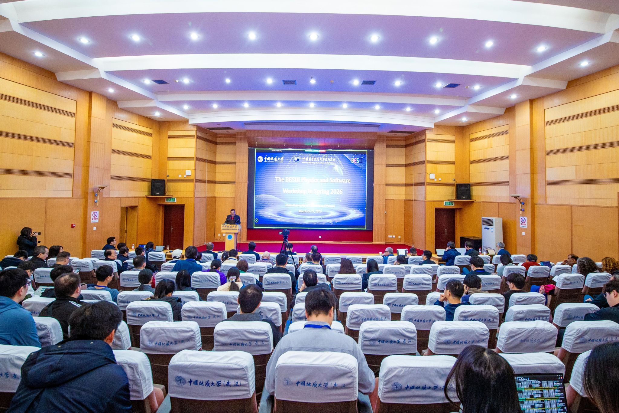 地大新闻网讯(通讯员 康晓琳)3月22日至26日,由我校数学与物理学院主办的“北京谱仪III(BESIII)国际合作组2026年春季物理软件国际研讨会”举行。来自中国、美国、德国、意大利、瑞典等国家的200余名知名专家与学者齐聚我校,围绕BESIII合作组当前的研究进展开展了广泛的交流与讨论,本次会议得到我校科学技术发展院的资助。